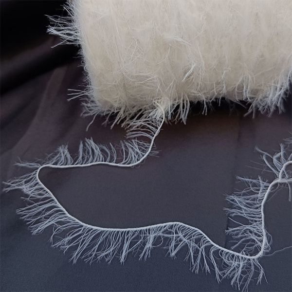 Feather yarn is soft, has smooth texture and a good performance to keep warm . Compared with the real mink, feather yarn is not only more affordable, but also practical and easy to maintain. Its advantages include naturally erect feathers, good luster, soft handfeel, higher abrasion resistance than other fibres, high elastic recovery rate, withstand folds.